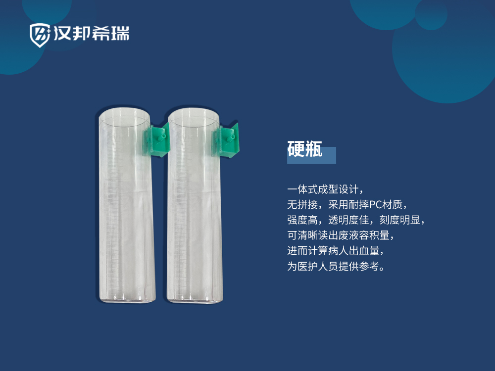 一体式成型设计,无拼接,采用耐摔PC材质,强度高,透明度佳,刻度明显,可清晰读出废液容积量,进而计算病人出血量,为医护人员提供参考。